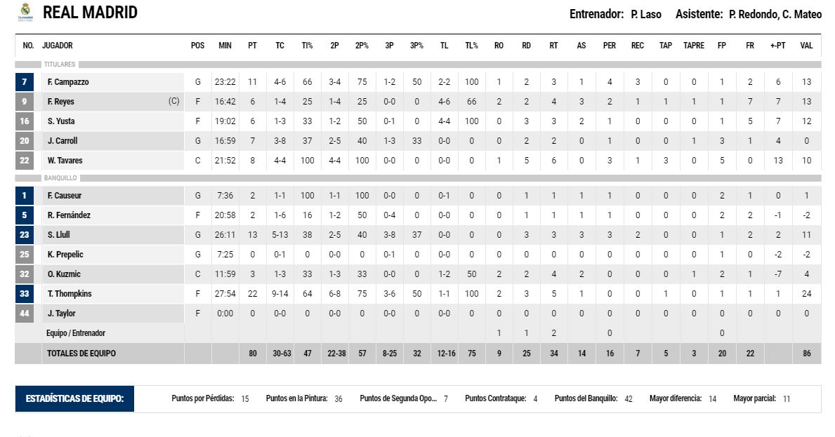 Οσον αφορά το ματς της Μαδρίτης, στο πρώτο ημίχρονο φάνηκε πως οι Μαδριλένοι θα έφταναν σε μια άνετη νίκη καθώς πήγαν στην ανάπαυλα με σκορ 42-30.