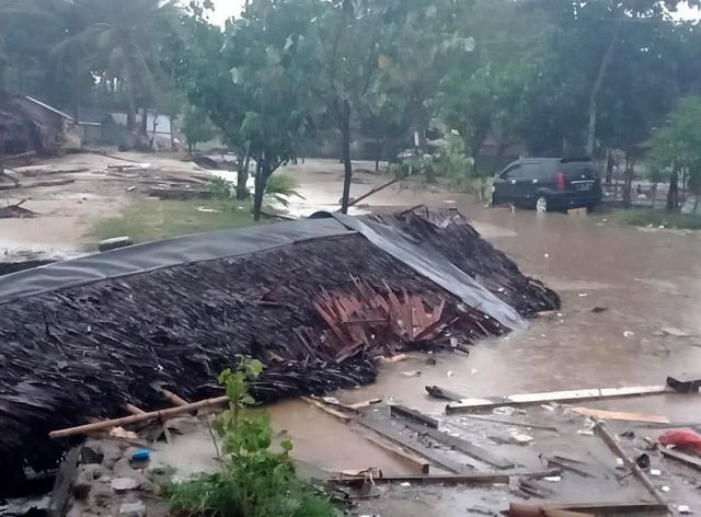 Εικόνες τηλεοπτικών συνεργείων δείχνουν δρόμους να έχουν αποκλειστεί από τα συντρίμμια σπιτιών, αυτοκίνητα να έχουν ανατραπεί και πεσμένα δέντρα. Τα νερά από το τσουνάμι παρέσυραν τη σκηνή πάνω στην οποία έπαιζε τοπικό ροκ συγκρότημα, προκαλώντας τον θάνατο τουλάχιστον ενός μουσικού. Οι υπόλοιποι αγνοούνται.