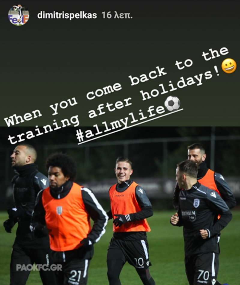 Ο διεθνής παίκτης του ΠΑΟΚ ανάρτησε μια φωτογραφία από την προπόνηση και μαζί έγραψε: «Όταν επιστρέφεις στις προπονήσεις μετά τις διακοπές. Όλη μου η ζωή!».