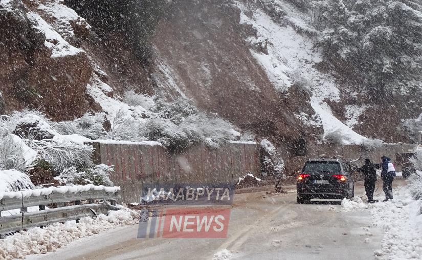 Όπως αναφέρει το tharrosnews.gr, ανά λίγη ώρα ο δρόμος δίδεται στην κυκλοφορία αλλά μόνο με χρήση αλυσίδων.