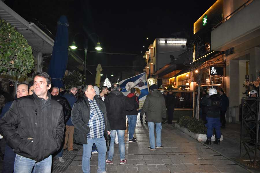 Οι συγκεντρωμένοι, παρουσία μεγάλης αστυνομικής δύναμης, φώναξαν συνθήματα κατά του λαρισαίου υφυπουργού.