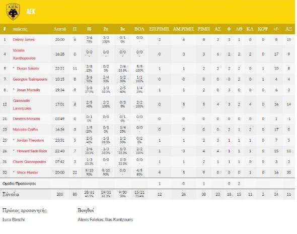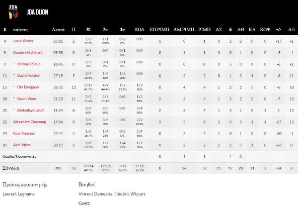 Στο πρώτο μέρος η «Ενωση» είχε 12/30διπ, 4/15τριπ και 17 ριμπ με τους Γάλλους να έχουν 11/22 διπ, 9/14τριπ και 16ριμπ.