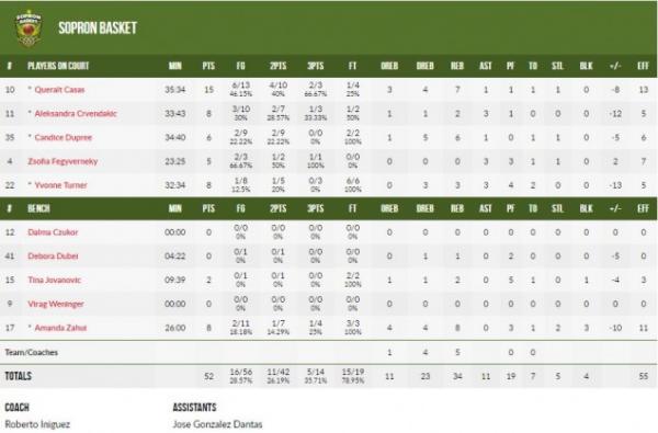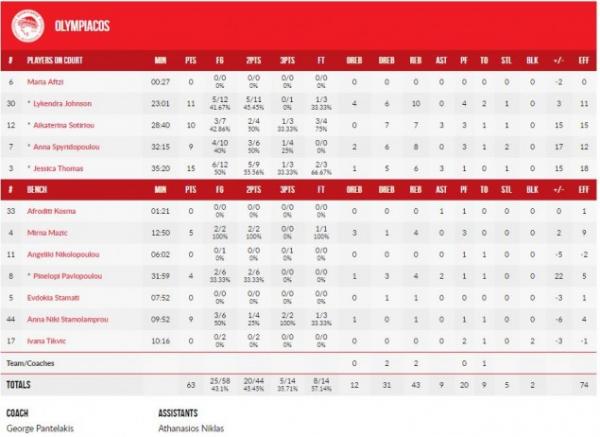 Πρώτη σκόρερ για τις νικήτριες ήταν η Τζέσικα Τόμας, η οποία ολοκλήρωσε τον αγώνα με 15 πόντους, 6 ριμπάουντ και 3 ασίστ. Από κοντά ακολούθησε η Λικέντρα Τζόνσον, με την Αμερικανίδα σέντερ να σκοράρει 11 πόντους και να κατεβάζει 10 ριμπάουντ. Από τις ηττημένες διασώθηκε η Κουεράλτ Κάσας, με 15 πόντους και 7 ριμπάουντ.