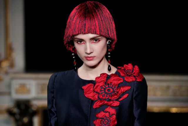 Το κόκκινο μπαίνει στην κολεξιόν αρχικά με μικρές πινελιές, στο μακιγιάζ με μια γραμμή που τονίζει τα μάτια των μοντέλων, στο βερνίκι των νυχιών τους, στα κρόσια με τους μικρούς κρυστάλλους που είχαν τα καπελάκια τους, δίνοντας έτσι χρώμα στα ταγιέρ από ύφασμα ζακάρ σε χρώμα πλατίνας, στο δέρμα.