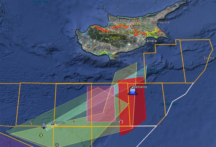 Σημειώνεται ότι την Παρασκευή η Τουρκία εξέδωσε παράτυπη Navtex με την οποία «δέσμευσε» θαλάσσια περιοχή νότια της Κύπρου για παράνομη δραστηριότητα – σεισμογραφικές έρευνες – του «Μπαρμπαρός» για περίοδο τεσσάρων μηνών, δηλαδή από σήμερα μέχρι και τις 256 Μαίου.