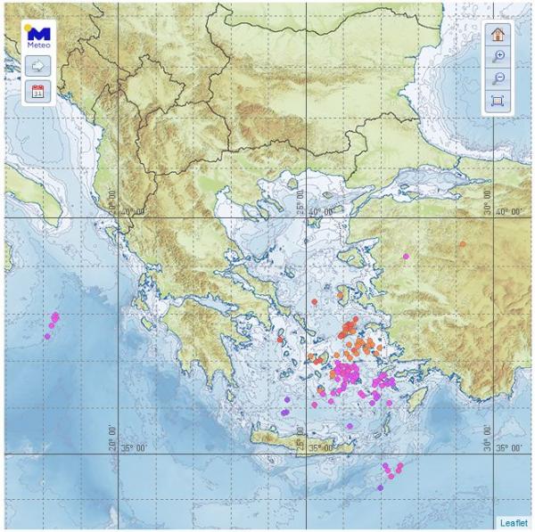 Τα φαινόμενα συνοδεύονται από ηλεκτρική δραστηριότητα, κυρίως στο Νότιο Αιγαίο, όπως σε διάστημα περίπου δέκα ωρών καταγράφηκαν 120 κεραυνοί από το δίκτυο ανίχνευσης κεραυνών ΖΕΥΣ του ΕΑΑ/Meteo.