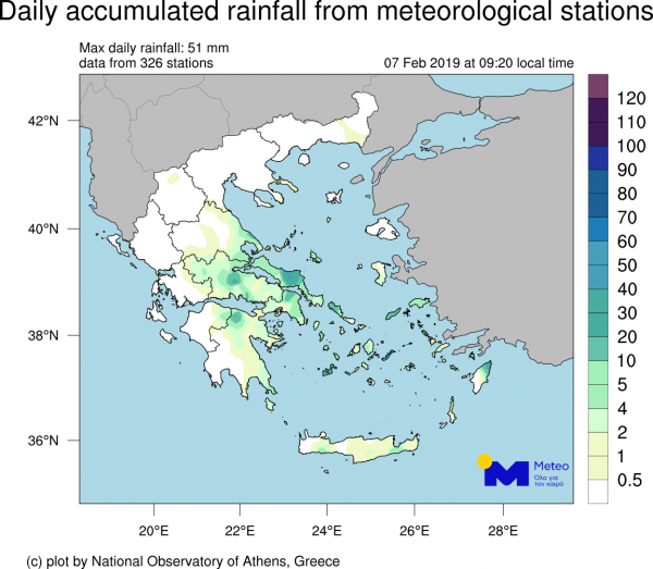 Σημαντικά ύψη βροχής από τα μεσάνυχτα έως τις πρωινές ώρες της Πέμπτης καταγράφηκαν από το δίκτυο των αυτόματων μετεωρολογικών σταθμών του ΕΑΑ/Meteo στα κεντρικά και νότια τμήματα της χώρας μας, με τα μεγαλύτερα ύψη βροχής να σημειώνονται στην Εύβοια (50 χιλιοστά στη Στενή), στην Κεντρική Στερεά και στο Νότιο Αιγαίο.