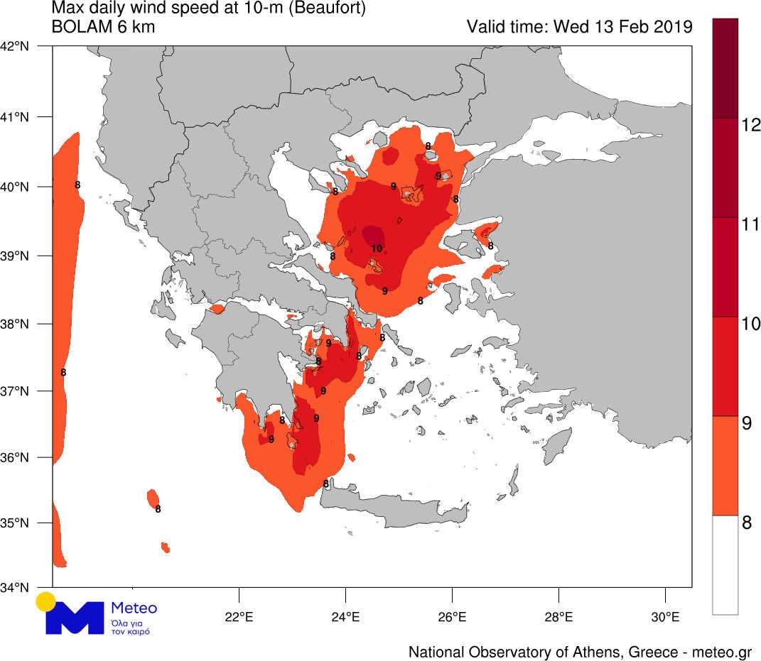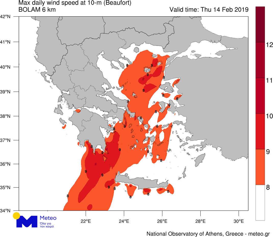 Οι άνεμοι θα πνέουν από βόρειες και βορειοανατολικές διευθύνσεις και στο Αιγαίο θα φτάνουν τα εννέα με δέκα μποφόρ, εξαιτίας των οποίων υπάρχει σοβαρός κίνδυνος φθορών ή ζημιών στις δημόσιες και ιδιωτικές υποδομές στην Εύβοια, στην Ανατολική Αττική, και στα νησιά του Αιγαίου.