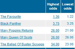 Φαβορί, επίσης, δείχνει πως θα είναι ο Γιώργος Λάνθιμος και στην κατηγορία της Καλλιτεχνικής Διεύθυνσης με το «Black Panther» και το «Ρόμα» που ακολουθούν, να μην δείχνουν ικανά να απειλήσουν.