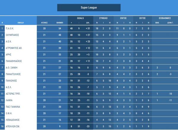 Η βαθμολογία της Super League: