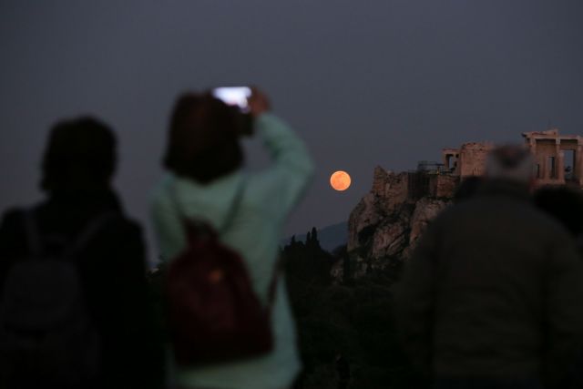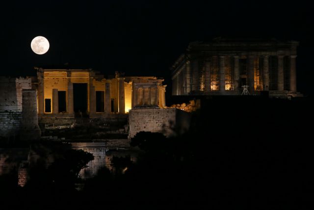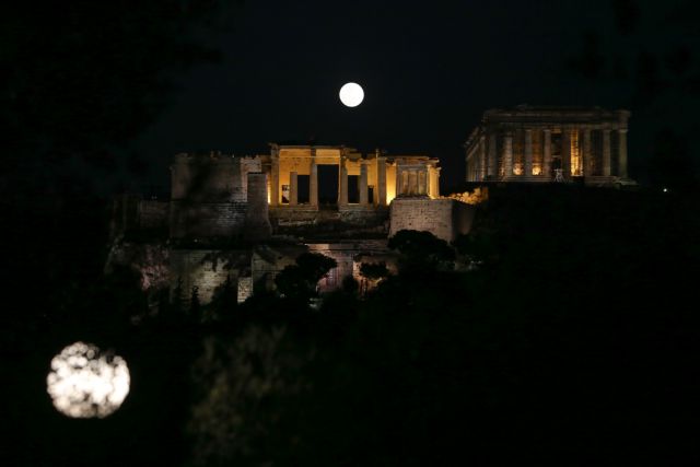 Εντυπωσιακές είναι οι φωτογραφίες από τη δεύτερη «υπερπανσέληνο» του 2019, η οποία κοσμεί τον αθηναϊκό ουρανό, αναδεικνύοντας τη μαγευτική εικόνα της Ακρόπολης και όχι μόνο.