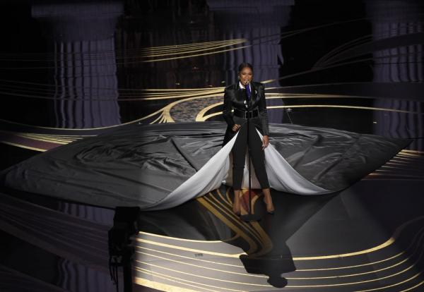Η Τζένιφερ Χάτσον ήταν η πιο εντυπωσιακή παρουσία με κοστούμι στην τελετή απονομής των Όσκαρ. Ανέβηκε στη σκηνή και ερμήνευσε το «I’ll Fight» (από το ντοκιμαντέρ RGB για τη Ρουθ Μπέιντερ Γκίνσμπουργκ, μέλος του Ανώτατου Δικαστηρίου των ΗΠΑ και τον αγώνα της για την ισότητα των φύλων και τα πολιτικά δικαιώματα) φορώντας φράκο σατέν Pamella Roland με μία δραματικών διαστάσεων ουρά σε λευκό χρώμα εσωτερικά.