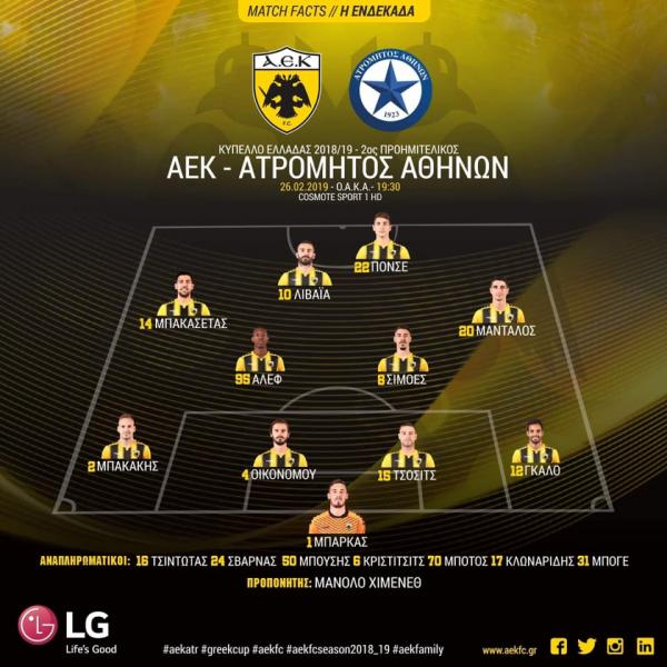 Η ΑΕΚ δίνει απόψε ένα κρίσιμο ματς για την ρεβάνς των προημιτελικών του Κυπέλλου Ελλάδος στο ΟΑΚΑ. Για τον αγώνα της φάσης των «8» κόντρα στην ομάδα του Περιστερίου, ο Μανόλο Χιμένεθ έχει επιλέξει τον Μπάρκα να υπερασπιστεί τα κιτρινόμαυρα γκολποστ.