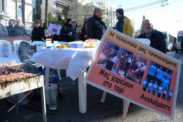 Με ψησταριές και καλαμάκια επέλεξαν να διαμαρτυρηθούν μέλη της ΠΟΕΔΗΝ στην είσοδο της Βουλής.