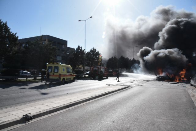 Ο τραυματίας διακομίστηκε με ασθενοφόρο του ΕΚΑΒ σε νοσοκομείο, ενώ από την έκρηξη προκλήθηκε πυρκαγιά σε τέσσερα οχήματα, συνολικά.