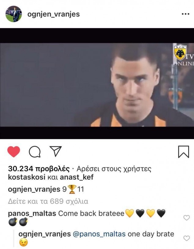Αυτή τη φορά ο Βόσνιος στόπερ ανέβασε στη σελίδα του στο Instagram του ένα βίντεο για τους κιτρινόμαυρους και όπως ηταν φυσικό από κάτω δέχθηκε πολλά σχόλια οπαδών των κίτρινων.