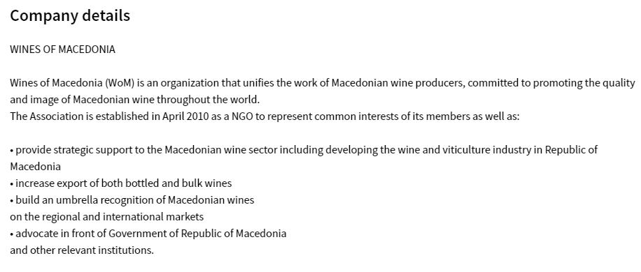 Μάλιστα, στην ιστοσελίδα του οργανισμού, ο οποίος ιδρύθηκε το 2010 για υποστηρίξει το έργο των οινοπαραγωγών της Μακεδονίας», καθώς και «να προωθήσει την ποιότητα και την εικόνα του μακεδονικού κρασιού σε όλο τον κόσμο», υπάρχουν και… ιστορικά στοιχεία για την περιοχή για όποιον επισκέπτη της Διεθνούς Έκθεσης ενδιαφέρεται να μάθει περισσότερα.