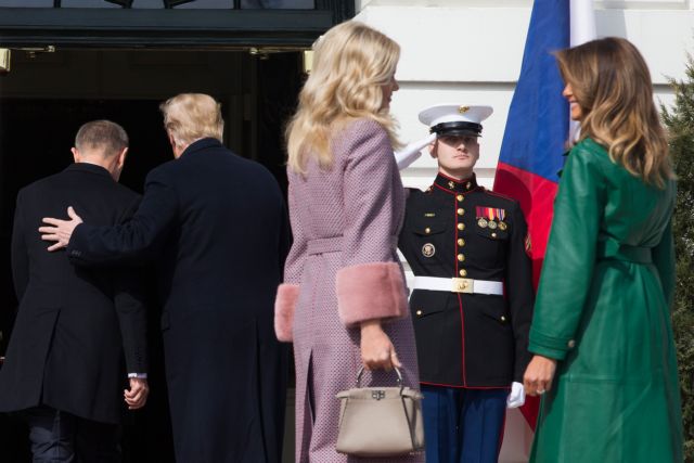 Χθες έδωσε μια ακόμα «παράσταση», όταν υποδέχθηκε στο Λευκό Οίκο τον Τσέχο πρωθυπουργό Αντρέι Μπάμπις και τη σύζυγό του Μόνικα Μαμπίσοβα, έχοντας στο πλευρό του τη σύζυγό του Μελάνια.