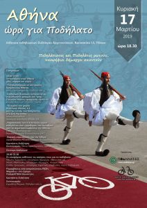 Η Πρωτεύουσα, στον τομέα της μετακίνησης με ποδήλατο, έχει μείνει πάρα πολύ πίσω. Πολύ εύστοχα λοιπόν οι Ποδηλάτ-ισσ-ες (podilates.gr) και οι Φίλοι του Ποδηλάτου (filoi-podilatou.gr) επέλεξαν τον τίτλο «Αθήνα, ώρα για ποδήλατο» για την εκδήλωση που διοργανώνουν την προσεχή Κυριακή (17/3) στον Σύλλογο Αρχιτεκτόνων.