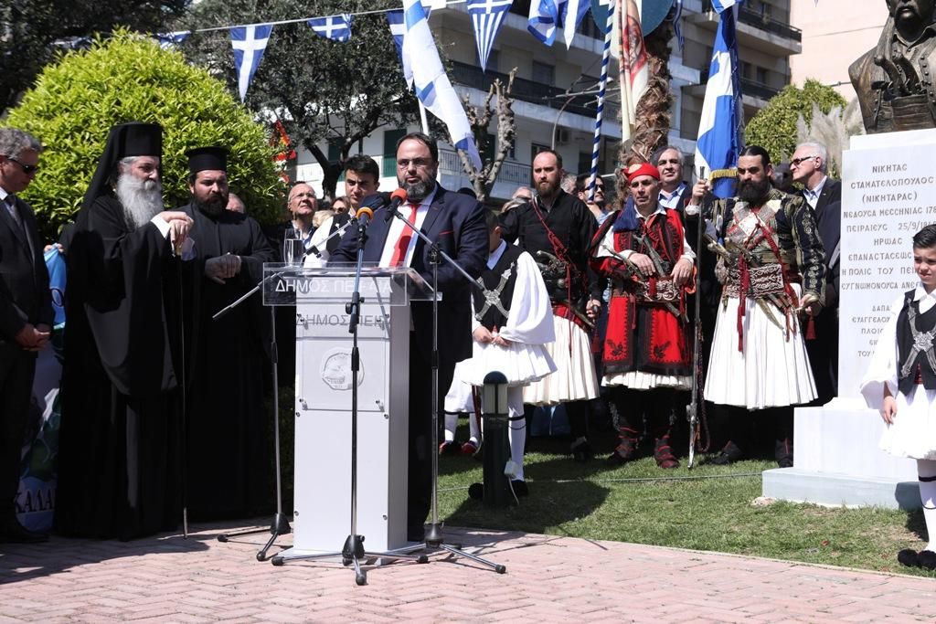 «Ως δημοτική αρχή και σε αγαστή συνεργασία με τη Μητρόπολη Πειραιά και τον Σεβασμιώτατο, εκπληρώνουμε ένα χρέος απέναντι στον ήρωα Νικηταρά. Η πόλη του Πειραιά αποδίδει έστω και λίγο καθυστερημένα στον μεγάλο αυτό στρατηγό της Ελληνικής Επανάστασης τον φόρο τιμής που του αρμόζει. Αυτό δεν θα μπορούσε να γίνει χωρίς την ευγενική δωρεά του κ. Ευάγγελου Μαρινάκη, μέσω της οποίας ανεγέρθηκε στο σημείο αυτό η προτομή του, έτσι ώστε οι Πειραιώτες και ειδικά οι νέοι μας, να μάθουν για την ιστορία του.