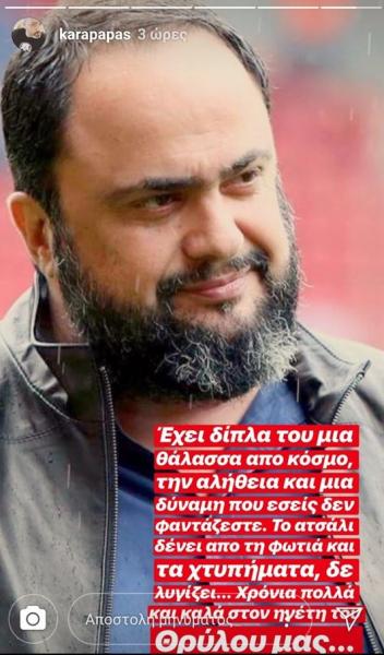 Ο Κώστας Καραπαπάς ευχήθηκε με έναν ιδιαίτερο τρόπο στον ηγέτη του Ολυμπιακού, Βαγγέλη Μαρινάκη για την ονομαστική του γιορτή.