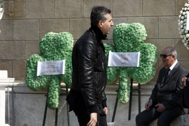Το φέρετρο είναι τυλιγμένο με σημαία του Τριφυλλιού, όπως επιθυμούσε ο εμβληματικός παράγοντας της ομάδας.