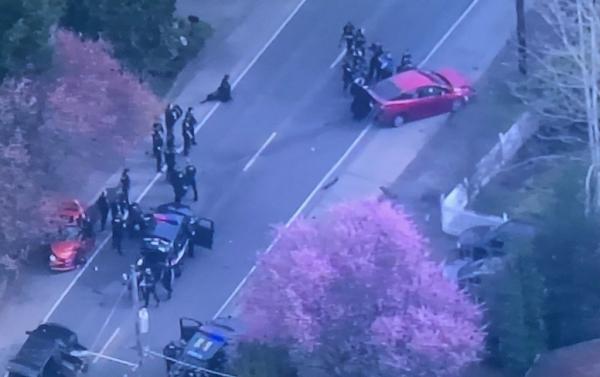 Καθώς κατέφθαναν αστυνομικοί, ο ένοπλος πήρε το Πρίους και προσπάθησε να διαφύγει αναπτύσσοντας ταχύτητα, αλλά συγκρούστηκε με διερχόμενο αυτοκίνητο, ο οδηγός του οποίου σκοτώθηκε. Οι αστυνομικοί που καταδίωκαν τον ύποπτο τον έθεσαν υπό κράτηση έπειτα από μια σύντομη αναμέτρηση.