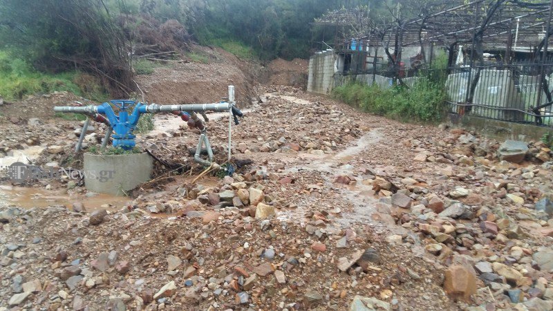 Εντωμεταξύ, ο αυτοσχέδιος δρόμος που είχαν φτιάξει οι κάτοικοι της περιοχής του Κερίτη στα Χανιά παρασύρθηκε από το ποτάμι που φούσκωσε εξαιτίας των βροχοπτώσεων.