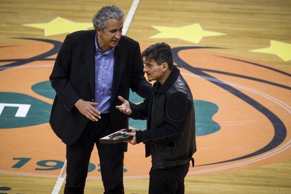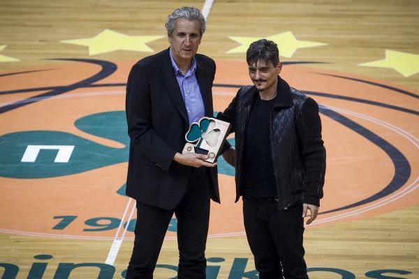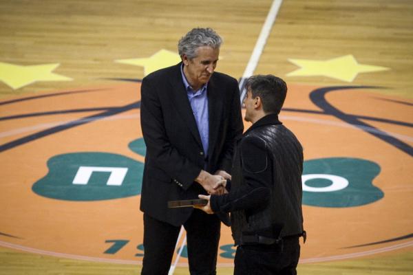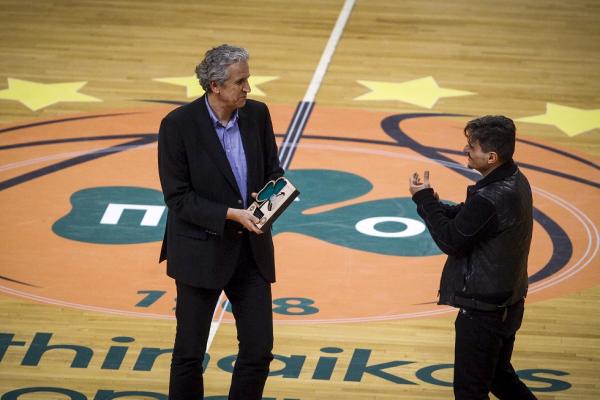 Ο παλαίμαχος άσος των «πρασίνων» τιμήθηκε από τον Δημήτρη Γιαννακόπουλο, ο οποίος του έδωσε μια πλακέτα.