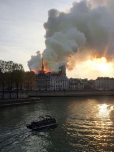 Η φωτιά ξέσπασε γύρω στις 19.50 (ώρα Ελλάδας) και ενδεχομένως συνδέεται με τις εργασίες συντήρησης που γίνονταν στο κτήριο. Το τηλεοπτικό κανάλι France 2 μετέδωσε ότι η αστυνομία την θεωρεί «ατύχημα». Λόγω των εργασιών ανακαίνισης στην εκκλησία την περασμένη εβδομάδα απομακρύνθηκαν από τον χώρο τα ορειχάλκινα αγάλματα.