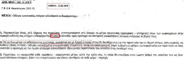 Στο έγγραφο η ΕΛ.ΑΣ ζητούσε προστασία των ρωσικών στόχων και ανεφέρε για τα μέτρα ασφαλείας «να εκδηλώνονται ανελλιπώς ουσιαστικά και με διαρκή ένταση» και να δοθούν εντολές για «αυξημένη επαγρύπνηση, ετοιμότητα και αποφυγή εφησυχασμού».