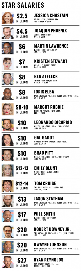 Συγκεκριμένα, τo Variety αποκάλυψε τις αμοιβές των σταρ του Χόλιγουντ για το 2019, με τις υψηλότερες να οφείλονται στο Netflix.