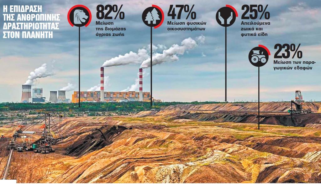 Είναι δεδομένο ότι οι ανθρώπινες κοινωνίες θα συνεχίσουν να υφίστανται για πάντα στον πλανήτη; Δεν είναι. Αυτό απαντούν, λαμβάνοντας υπόψη τα στοιχεία που έχουν στη διάθεσή τους, 145 κορυφαίοι επιστήμονες από 59 χώρες του ΟΗΕ. Ο πλανήτης Γη καταστρέφεται με ταχείς ρυθμούς και η πορεία προς τον όλεθρο θα καταστεί μη αναστρέψιμη, υποστηρίζουν οι ειδικοί, αν οι άνθρωποι δεν αλλάξουν τα μοντέλα παραγωγής και κατανάλωσης που έχουν υιοθετήσει. Η έκθεση που έδωσαν χθες στη δημοσιότητα οι εμπειρογνώμονες μέσω της Διακυβερνητικής Επιστημονικής και Πολιτικής Πλατφόρμας για τη Βιοποικιλότητα και τις Υπηρεσίες Οικοσυστήματος των Ηνωμένων Εθνών (IPBES) είναι συγκλονιστικά εύγλωττη: Αυτήν τη στιγμή ένα εκατομμύριο είδη απειλούνται με εξαφάνιση. Το 1/3 των κοραλλιογενών υφάλων κινδυνεύει να εξαφανιστεί, τα τροπικά δάση μετατρέπονται σε σαβάνες, ενώ η υποβάθμιση της γης έχει μειώσει την παραγωγικότητα στο 23% των εδαφών της. Και ο ρυθμός της καταστροφής αυξάνεται διαρκώς – είναι ήδη εκατοντάδες φορές υψηλότερος από ό,τι τα τελευταία δέκα εκατομμύρια χρόνια…