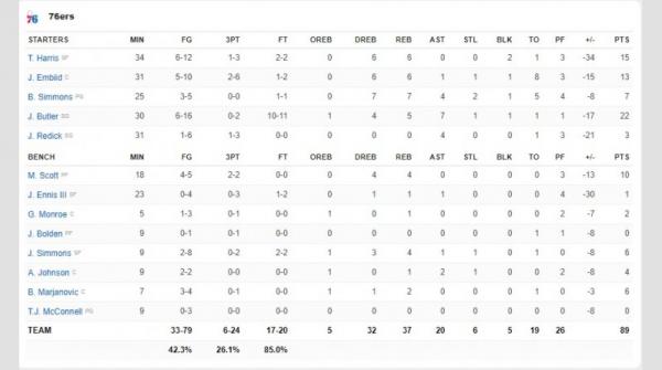 Όσον αφορά στο ματς, οι Σίξερς εμφανίστηκαν ανταγωνιστικοί μόνο στην πρώτη περίοδο με τη διαφορά από το ημίχρονο να βρίσκεται κοντά στους 20 πόντους ενώ η μεγαλύτερη τιμή της ήταν στους 36.