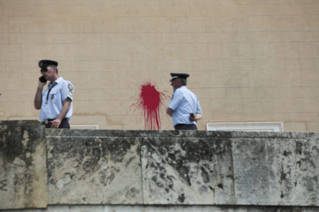 Μέρα μεσημέρι και χωρίς καμιά αντίδραση, πέρασαν μπροστά από τη φρουρά, ανέβηκαν τα σκαλιά και πέταξαν τις μπογιές και τα δακρυγόνα χωρίς κανείς να τους ενοχλήσει. Μόνο προς το τέλος της επίθεσης εμφανίστηκαν αστυνομικοί.