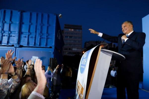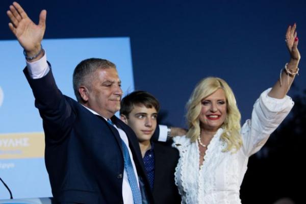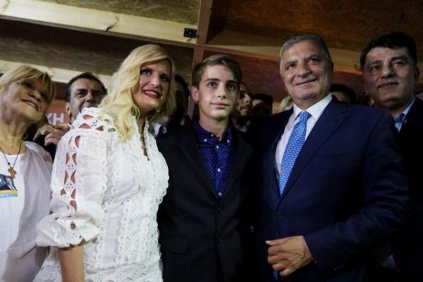 Μετά το τέλος της δήλωσής του ανέβασε το γιο του -ο οποίος χθες είχε τα γενέθλια του- και τη γυναίκα του Μαρίνα η οποία με ένα φιλί σφράγισε την μεγάλη νίκη του.
