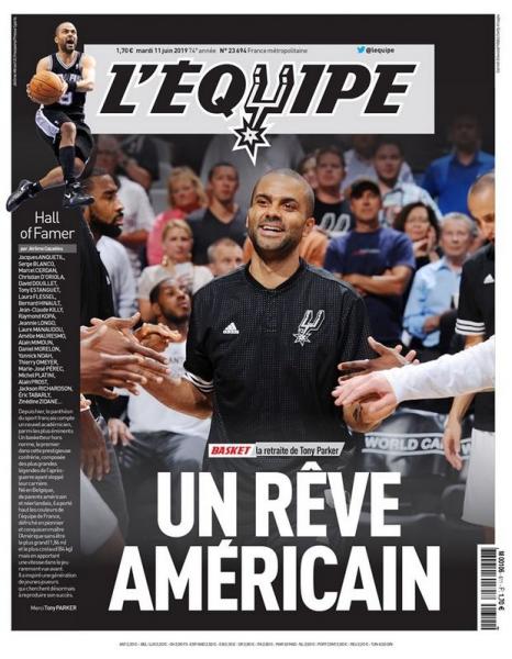 Ο σπουδαίος Πάρκερ δεν φιγουράρει απλώς στο πρωτοσέλιδο. Η Equipe τροποποίησε το λογότυπό της έτσι ώστε να μοιάζει με αυτόν τον Σαν Αντόνιο Σπερ.