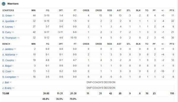 Βέβαια για να γίνει αυτό βοήθησαν και οι… Γουόριορς. Στην τελευταία επίθεση και με την ομάδα του στο -2 (112-110) πήρε το τελευταίο σουτ από το τρίποντο αλλά αστόχησε. Στην εξέλιξη της φάσης οι παίκτες του Κερ ζήτησαν τάιμ άουτ ενώ δεν είχαν άλλο στη διάθεσή τους, ο Γκριν χρεώθηκε τεχνική ποινή για αυτό και ο Λέοναρντ με 2/2 βολές διαμόρφωσε το τελικό 114-110.