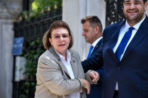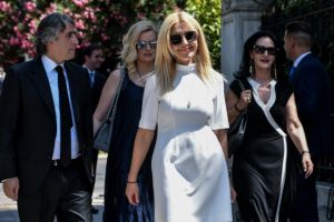 Ακριβώς στις 12:00 ο πρωθυπουργός Κυριάκος Μητσοτάκης έφτασε στο Προεδρικό συνοδευόμενος από τη σύζυγό του Μαρέβα Μητσοτάκη, που παρέδωσε για άλλη μια φορά μαθήματα στυλ. Η κ. Μητσοτάκη έκλεψε τις εντυπώσεις καθώς φορούσε ένα μπεζ παντελόνι συνδυασμένο μια μπλέ τουνίκ και μία ζώνη στη μέση.