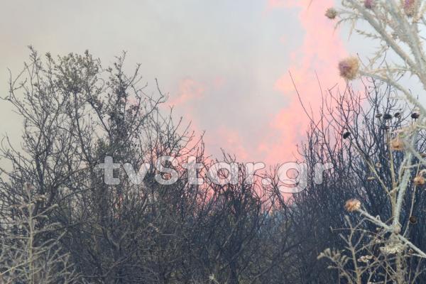 Είναι χαρακτηριστικό ότι ο άνεμος στην περιοχή έχει πολλές διακυμάνσεις με συνέπεια οι πυροσβέστες να μην καταφέρνουν να ελέγξουν όλα τα μέτωπα. Λίγο μετά τις 6 το απόγευμα τα μέτωπα της φωτιάς βρίσκονται περιφερειακά από το χωριό και έχουν μια κίνηση προς ανατολάς μέσα σε δασικές και χορτολιβαδικές εκτάσεις.