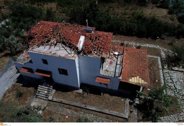 Όπως φαίνεται από τις φωτογραφίες, οι πληγείσες περιοχές θυμίζουν βομβαρδισμένο τοπίο, καθώς το φονικό μπουρίνι, το οποίο μπορεί να διήρκησε μόλις ελάχιστα λεπτά, ήταν αρκετό για να προκαλέσει εκτεταμένες ζημιές σε σπίτια, επιχειρήσεις, σε καλλιέργειες και στις υποδομές της ευρύτερης περιοχής της Χαλκιδικής.