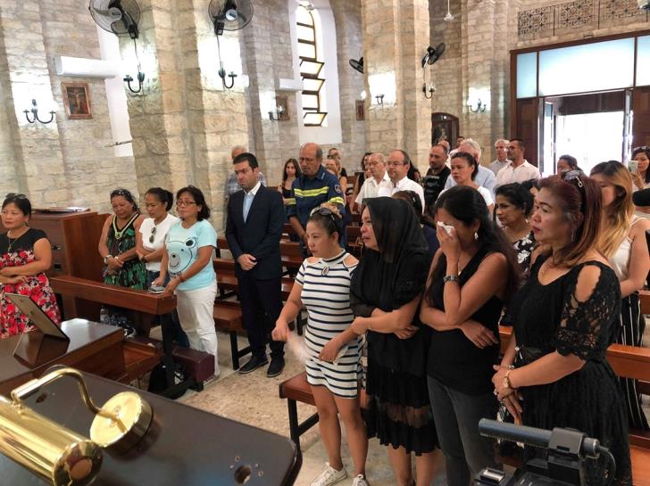 Σηκώνοντας το δεξί τους χέρι, όλοι αποχαιρέτησαν τη φίλη τους Maricar, καθώς το φέρετρο μεταφερόταν εκτός του Καθολικού Ναού, για το τελευταίο ταξίδι προς την πατρίδα της, τις Φιλιππίνες, όπου θα γίνει η ταφή της.
