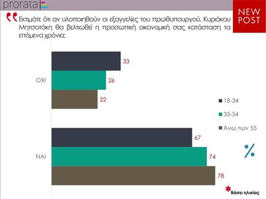 Αν ληφθούν υπόψη τα δημογραφικά χαρακτηριστικά των συμμετεχόντων, παρατηρείται ασθενής διαφοροποίηση μεταξύ όσων είναι 18 έως 34 ετών αλλά και των ανέργων, όπου η πίστη στην βελτίωση της προσωπικής κατάστασης μειώνεται ελαφρώς στο 67-68% χωρίς όμως να επηρεάζει την γενική εικόνα η οποία αναμφισβήτητα δείχνει την θετική απήχηση των προγραμματικών δηλώσεων του πρωθυπουργού.