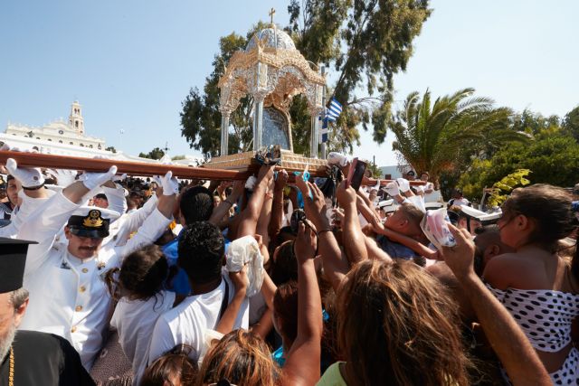 Ακολούθως, ο κ. Μητσοτάκης μετέβη στον ΙΝ Ευαγγελίστριας όπου με τη σύζυγό του παρακολούθησε την πανηγυρική Θεία Λειτουργία προεξάρχοντος του Σεβασμιωτάτου Μητροπολίτου Σύρου – Τήνου κ. Δωροθέου Β’, καθώς και τη λιτάνευση της εικόνας της Παναγίας, και τη δέηση στην κεντρική πλατεία.