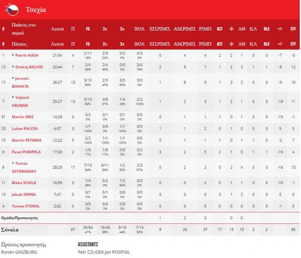 Οι Τσέχοι μπήκαν καλά στο 3ο δεκάλεπτο και με τους κορυφαίους τους σήμερα Σατοράνσκι και Μπάλβιν, έριξαν τη διαφορά στους 11 (34-45, 23′). Με ένα επιμέρους σκορ 4-10 η ομάδα του Γκρεγκ Πόποβιτς ξέφυγε και πάλι στο σκορ, κλείνοντας την τρίτη περίοδο στο +18 (48-66).