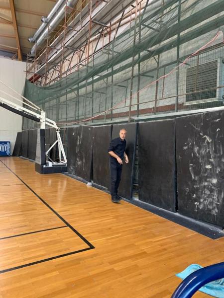 Πιο συγκεκριμένα, οι εργασίες στα δύο κλειστά γήπεδα εκτελούνταν από τον Δήμο Πειραιά με τη χρηματοδότηση της Περιφέρειας Αττικής, η οποία ωστόσο έχει σταματήσει την χρηματοδότηση με αποτέλεσμα να μην συνεχίζονται οι εργασίες ανακατασκευής.