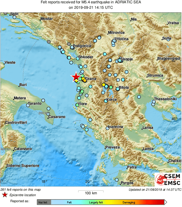 Συγκεκριμένα, ο σεισμός έγινε αισθητός σε Ιωάννινα, Θεσσαλονίκη και στη Λάρισα! Επίσης, όπως φαίνεται στο συγκεκριμένο χάρτη, ο σεισμός έγινε αισθητός στα Σκόπια αλλά και τις γειτονικές περιοχές της Ιταλίας.