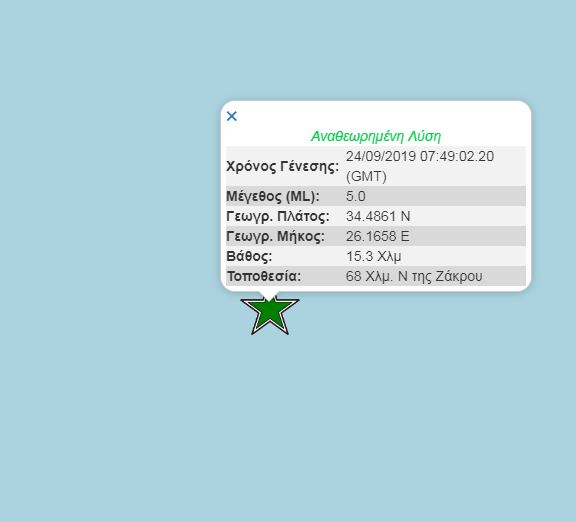 Τα στοιχεία του Ινστιτούτου δείχνουν πως ο σεισμός σημειώθηκε σε θαλάσσια περιοχή 62 χιλιόμετρα νότια της Ζάκρου.