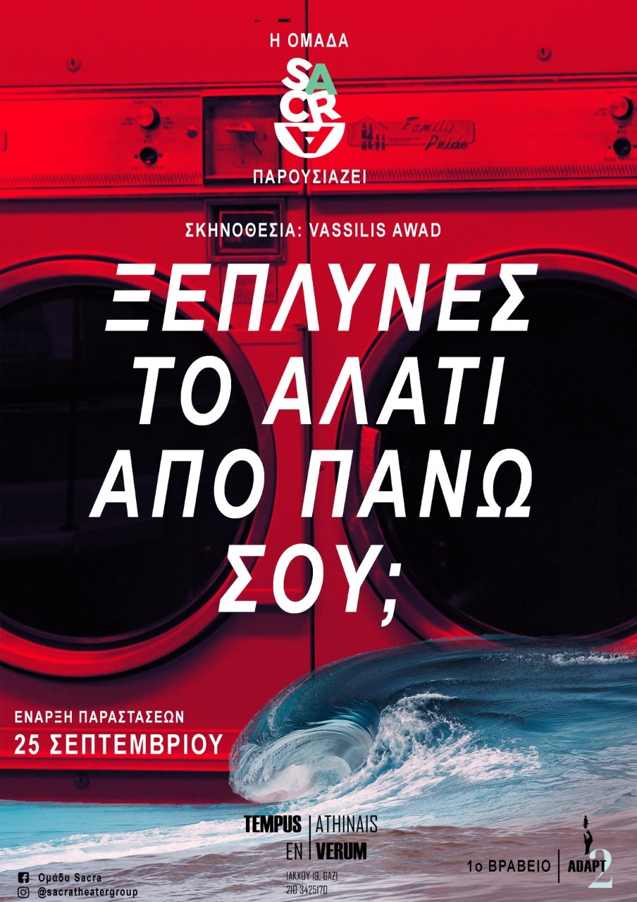 «Ξέπλυνες το Αλάτι από Πάνω σου;» – Η παράσταση – ερώτηση με τον αινιγματικό τίτλο, που διακρίθηκε με το 1ο βραβείο στο AdaptFestival 2 τον Ιούνιο, καλωσορίζει το Αθηναϊκό κοινό στη φετινή θεατρική σεζόν στις 25 Σεπτεμβρίου στο Θέατρο TempusVerum – Εν Αθήναις (Ιάκχου 19, Γκάζι).