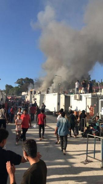Στο ΚΥΤ της Μόριας επικράτησε χάος το απόγευμα όταν μέσα σε διάστημα λίγων λεπτών ξέσπασαν δύο διαφορετικές πυρκαγιές εκτός και εντός της Δομής.